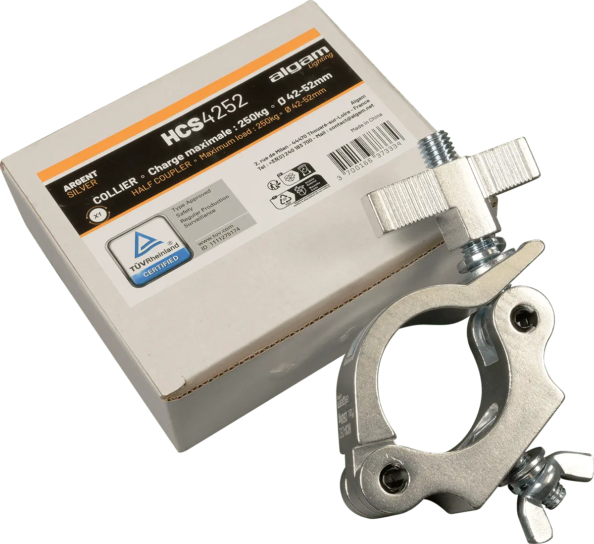 The HCS-4252-250KG is an aluminium clamp for structures, ideal for services and installations. Designed to attach to structures with cross-sections of 42 to 52 mm, this clamp has a maximum load capacity of 250 kg.