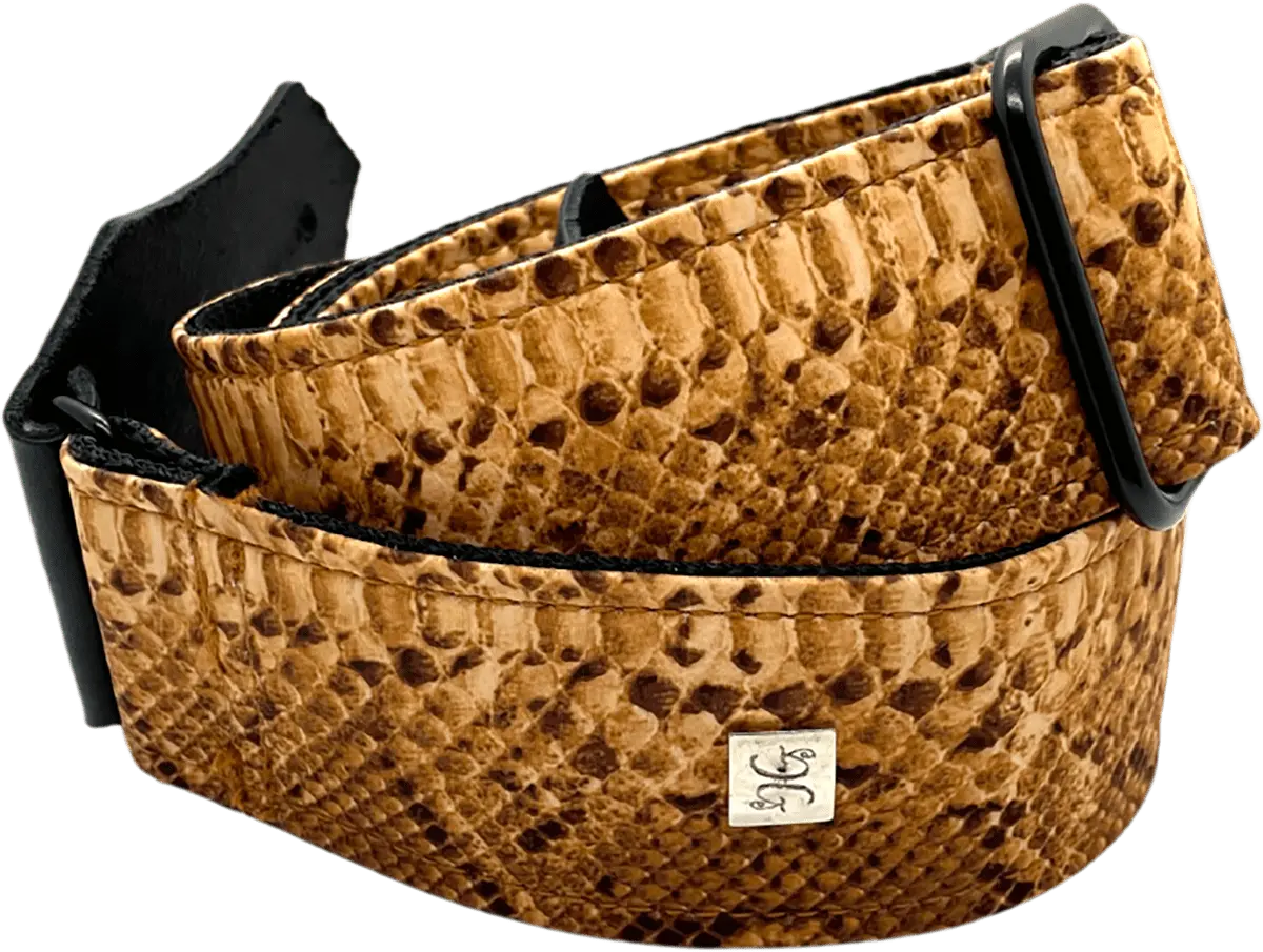 The Diamondback collection features a moleskin lining with a beautiful rattlesnake print in a selection of 4 vibrant colours. Each strap is unique because of the cut of the fabric, just as each snake is unique. Available in four vibrant colours. With a fully adjustable length of 65 inches, these straps are perfect for guitarists of all sizes! Their matte black finish welded metal fittings are free from heavy metals and harmful substances.