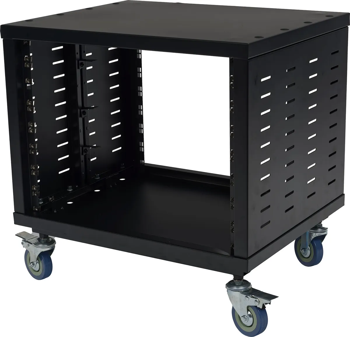 Whether you're a seasoned musician or an audio professional, this 8U studio rack will keep your gear organized, protected and accessible at all times. Its sturdy construction and versatility make it an ideal choice for use both in the studio and on stage.