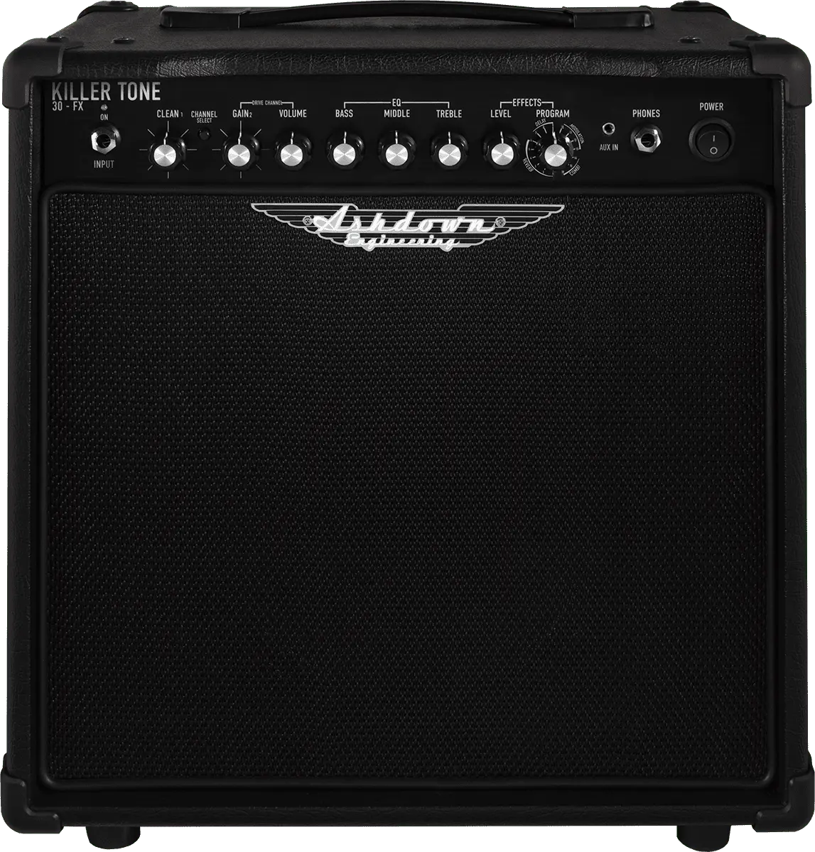 Introducing the KT-30 FX, the latest gem in the All NEW Killer Tone practice amp series. This 30-watt powerhouse is meticulously designed to deliver Killer Tone every day. Tuned to emulate the warmth of a tube amp, it's enriched with modern features tailored for aspiring guitarists. With a 16-way digital effects unit, line input for jamming, and headphone out for silent practice, the KT-30 FX is your ultimate companion for killer sound
