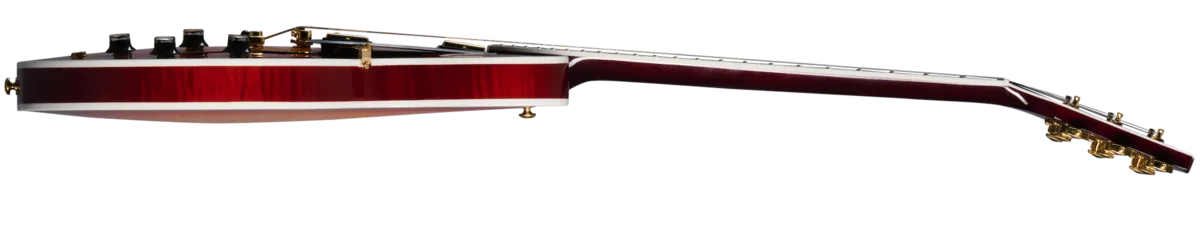 The Gibson ES-335 has always been known as an exceptionally versatile guitar. Regardless of your stylistic preferences or what the gig calls for, it can cover it with aplomb. The ES Supreme expands on that legendary versatility and adds features that take the ES™ to new heights of beauty, including a 3-ply body with a AAA figured maple top, Super Split Block mother-of-pearl neck inlays, gold hardware, and a striking new mother-of-pearl headstock inlay inspired by a design from the 1940s that was discovered in the Gibson archives. Smooth playability is ensured by the mahogany neck with its Rounded C profile and compound radius ebony fretboard, while the famous ES sonic versatility is enhanced even further with the addition of push/pull volume pots for coil splitting the Burstbucker™ Rhythm Pro and Burstbucker Lead Pro pickups. It all comes together to make this the ES that reigns supreme. A hardshell case is also included.
