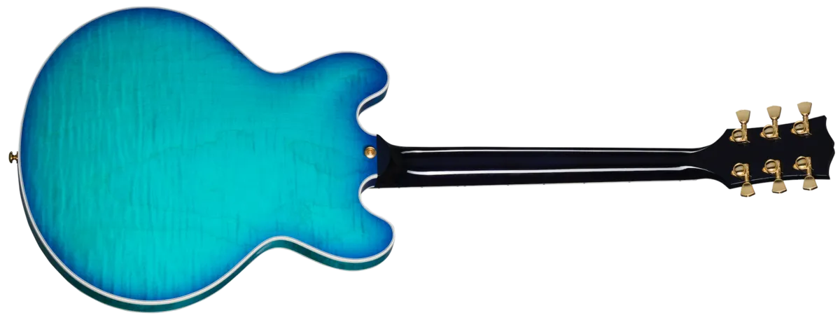 The Gibson ES-335 has always been known as an exceptionally versatile guitar. Regardless of your stylistic preferences or what the gig calls for, it can cover it with aplomb. The ES Supreme expands on that legendary versatility and adds features that take the ES ™ to new heights of beauty, including a 3-ply body with a AAA figured maple top, Super Split Block mother-of-pearl neck inlays, gold hardware, and a striking new mother-of-pearl headstock inlay inspired by a design from the 1940s that was discovered in the Gibson archives. Smooth playability is ensured by the mahogany neck with its Rounded C profile and compound radius ebony fretboard, while the famous ES sonic versatility is enhanced even further with the addition of push/pull volume pots for coil splitting the Burstbucker™ Rhythm Pro and Burstbucker Lead Pro pickups. It all comes together to make this the ES that reigns supreme. A hardshell case is also included.