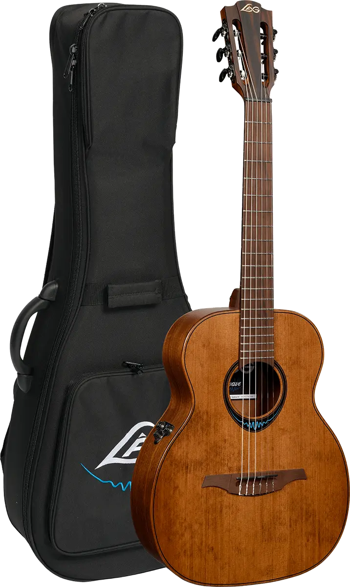 The Lag TNBW1TE-BRW brings a fresh experience to nylon string guitars by skillfully blending traditional and modern elements. This travel-shaped electro-acoustic guitar encourages players to dive into a rich and expansive tonal world.