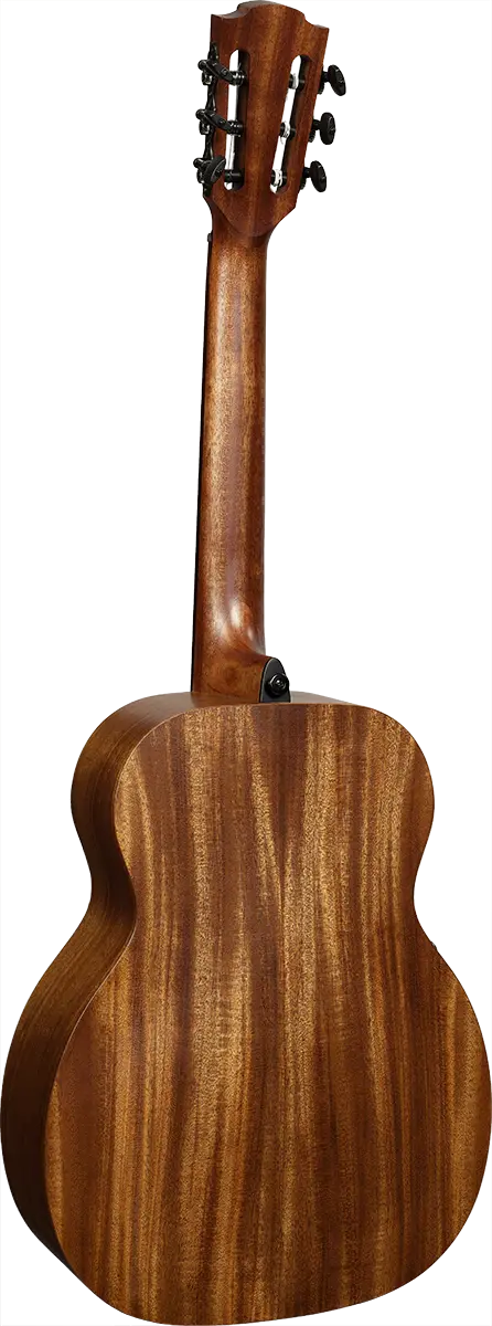 The guitar sports a Solid Red Cedar top with an Aged Brown Finish. This unique finish imparts the guitar with a striking vintage look while preserving the natural richness of Red Cedar wood.