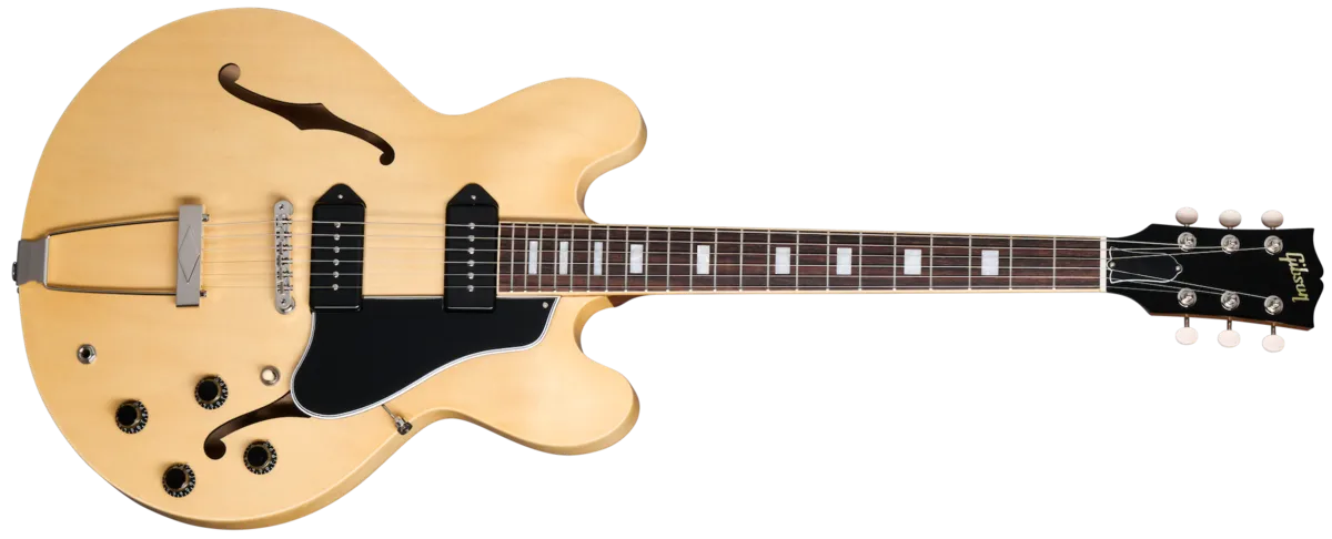 The Gibson ES-330 has garnered a reputation for its distinctive sound. comfortable playability. and classic aesthetics. making it a favorite among musicians seeking a versatile. vintage-inspired ESTU-style electric guitar. A close cousin of the Epiphone Casino"'. the ES-330 shares a similar fully-hollow thinline body made of 3-ply maple/poplar}maple and is Supremely resonant and warm-SOunding due to the hollOW body- trapeze tailpiece, and deep-set neck that creates an optimized bridge location. The mahogany nock has a cornfortable Rounded 'C' profile and features a rosewood fretboard With acrylic small block inlays and medium jumbo frets. The ES-330 is powered by a pair of Doggar P-90 pickups that are hand-wired to 500k potentiometers and Orange OropØ Capacitors for bright and Clear clean tones and wonderfully nasty, snarling tones when overdriven. The ES-330 is not only a great-sounding electric guitar for stage and studio use but is also equally enjoyable as a songwriting tool and is considered by many to be the ideal couch guitar" since it can be enjoyed equally well when unplugged and played acoustically. We•re proud to bring the ES-330 back to the Gibson catalog so players can once again have the opportunity to discover the mag ic Of this distinctive-sounding, vintage-insplred classic.
