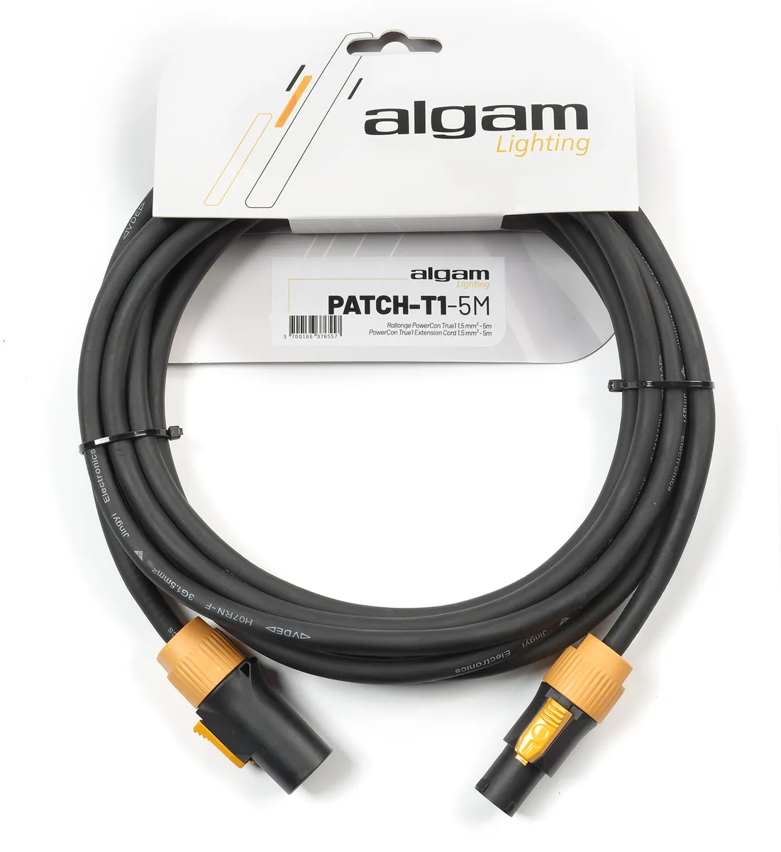 This 5m PowerCon TRUE1 power extension cable is specially designed to meet the rigorous demands of live performance environments. The design of the TRUE1 connector allows it to withstand up to 16A and to be connected under load and under voltage. This cable is ideal for powering light machines or extending a PowerCon TRUE1 cable.A standard for events and professional machinesRenowned for its robustness and flexibility of use, the PowerCon True1 connector is a modified and improved version of the classic PowerCon connector. The TRUE1's design enables it to be hot-plugged in complete safety, and is capable of handling up to 16A. What's more, both male and female TRUE1 connectors can be plugged into each other without adapters, making them easy to use as extension cables.