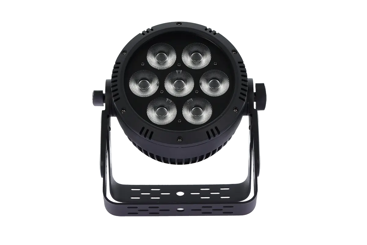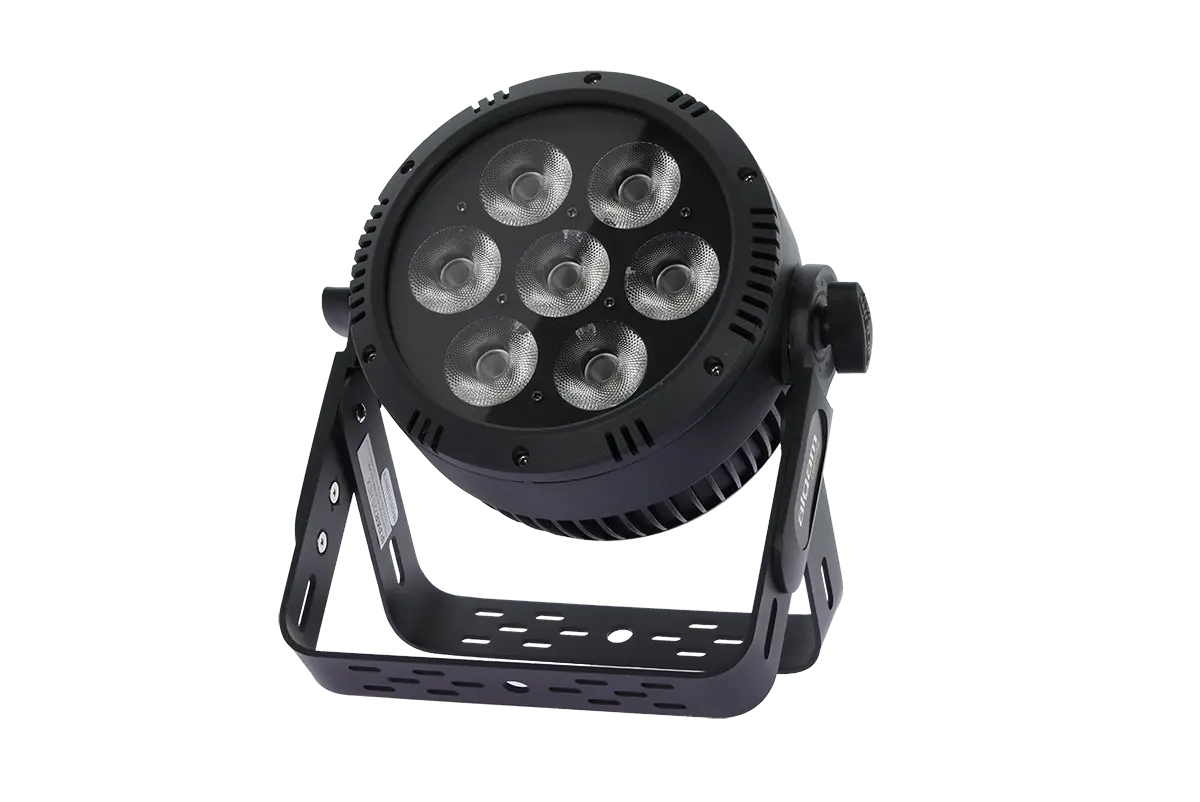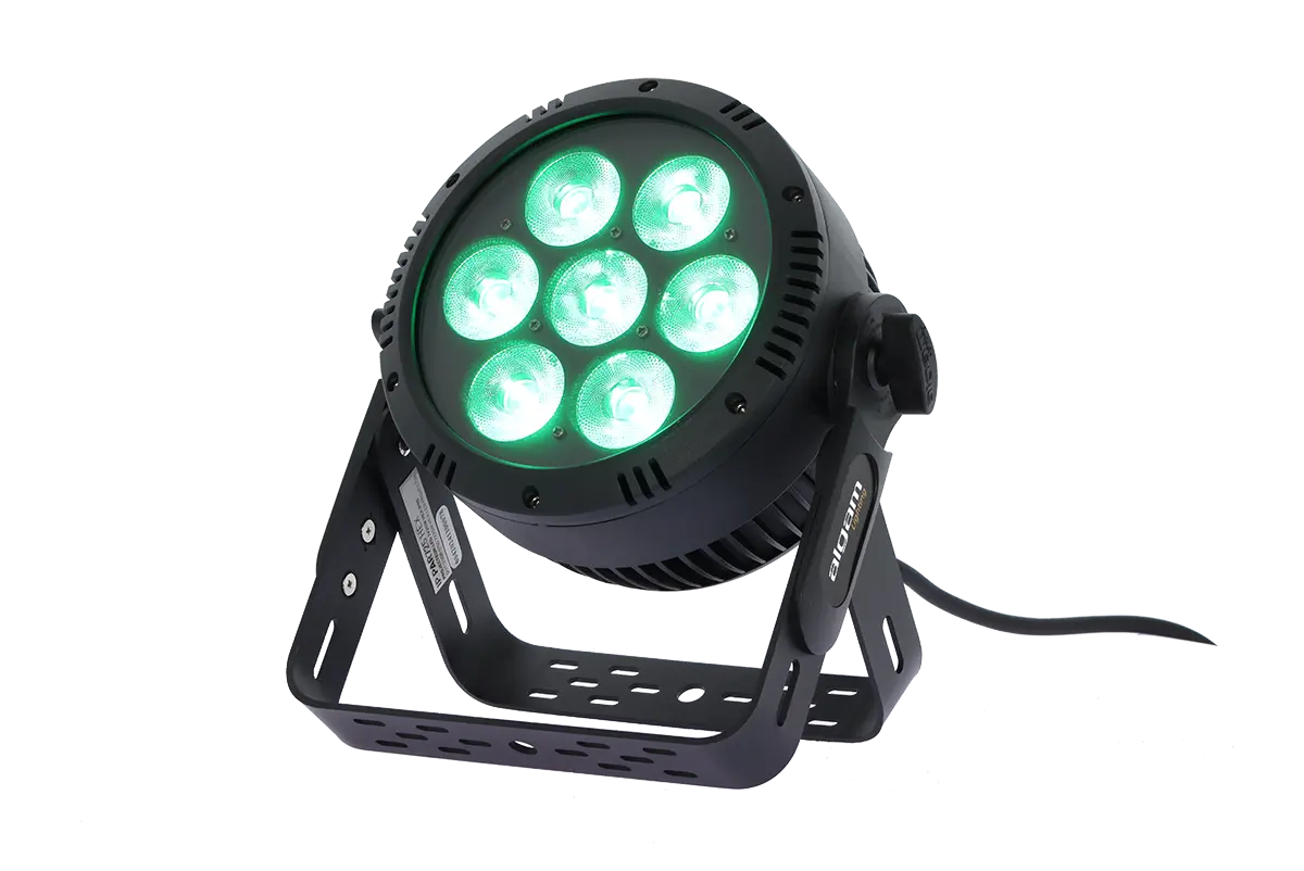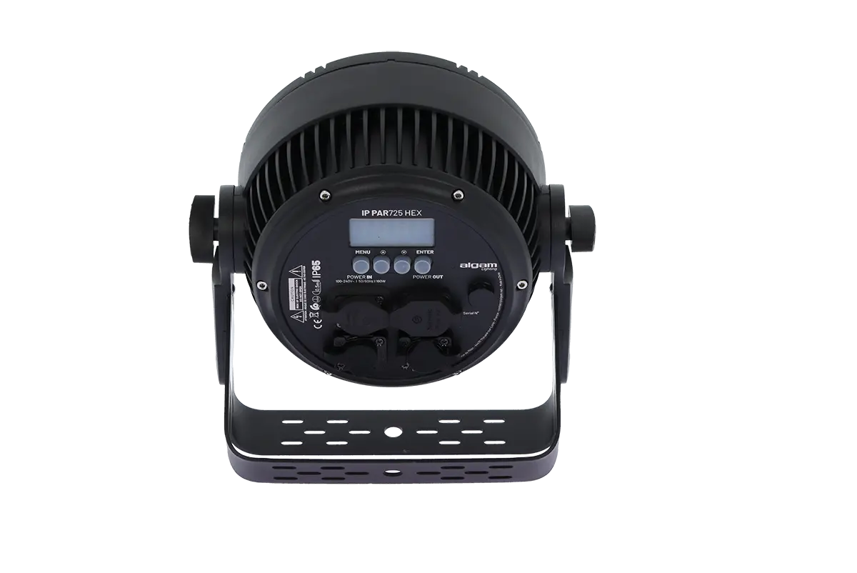 Specifically designed to illuminate outdoor scenes in the harshest conditions, the IP PAR 725 HEX features 7 powerful 25W 6-in-1 RGBWAUV LEDs opening to 20°, combined with IP65 connectors capable of withstanding the elements and dust infiltration. Its double bracket makes installation easy, whether on the ground or on a structure.